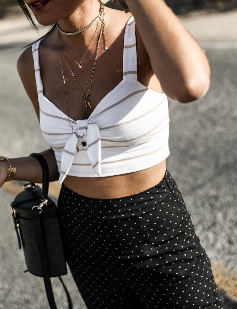 J’essaye toujours de mettre des crop tops avec des pantalons taille haute pour rééquilibrer la silhouette et surtout pour ne pas que cela fasse trop vulgaire/sexy. Avec ce style de bas, je trouve que ça fonctionne très bien!