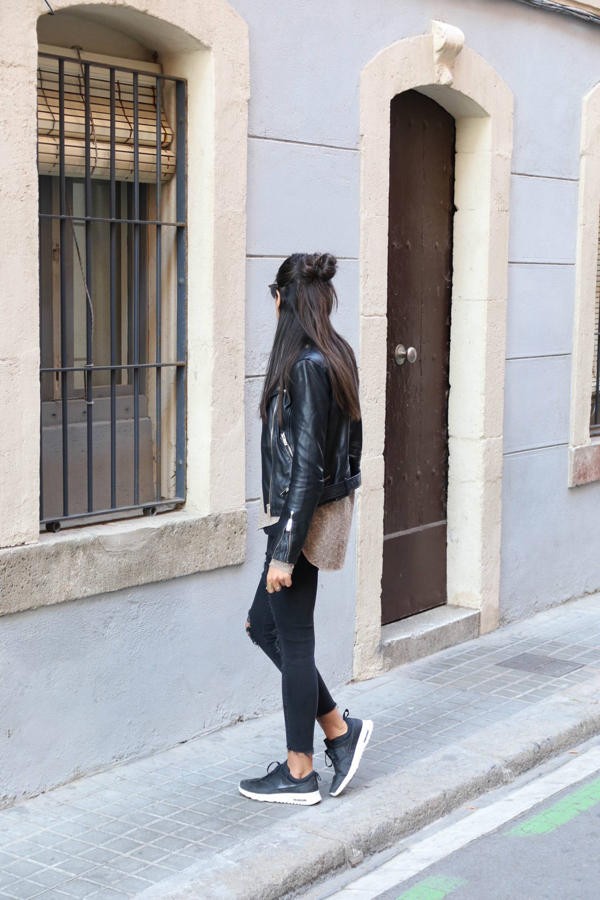Voici donc la tenue que je portais pour notre dernier jour à Barcelone (snif). J’ai d’ailleurs eu un peu chaud et j’ai vite quitté le perfecto! (Bon si ça peut vous rassurer en rentrant à Montpellier j’ai de suite remis l’écharpe et le manteau…Grr).
