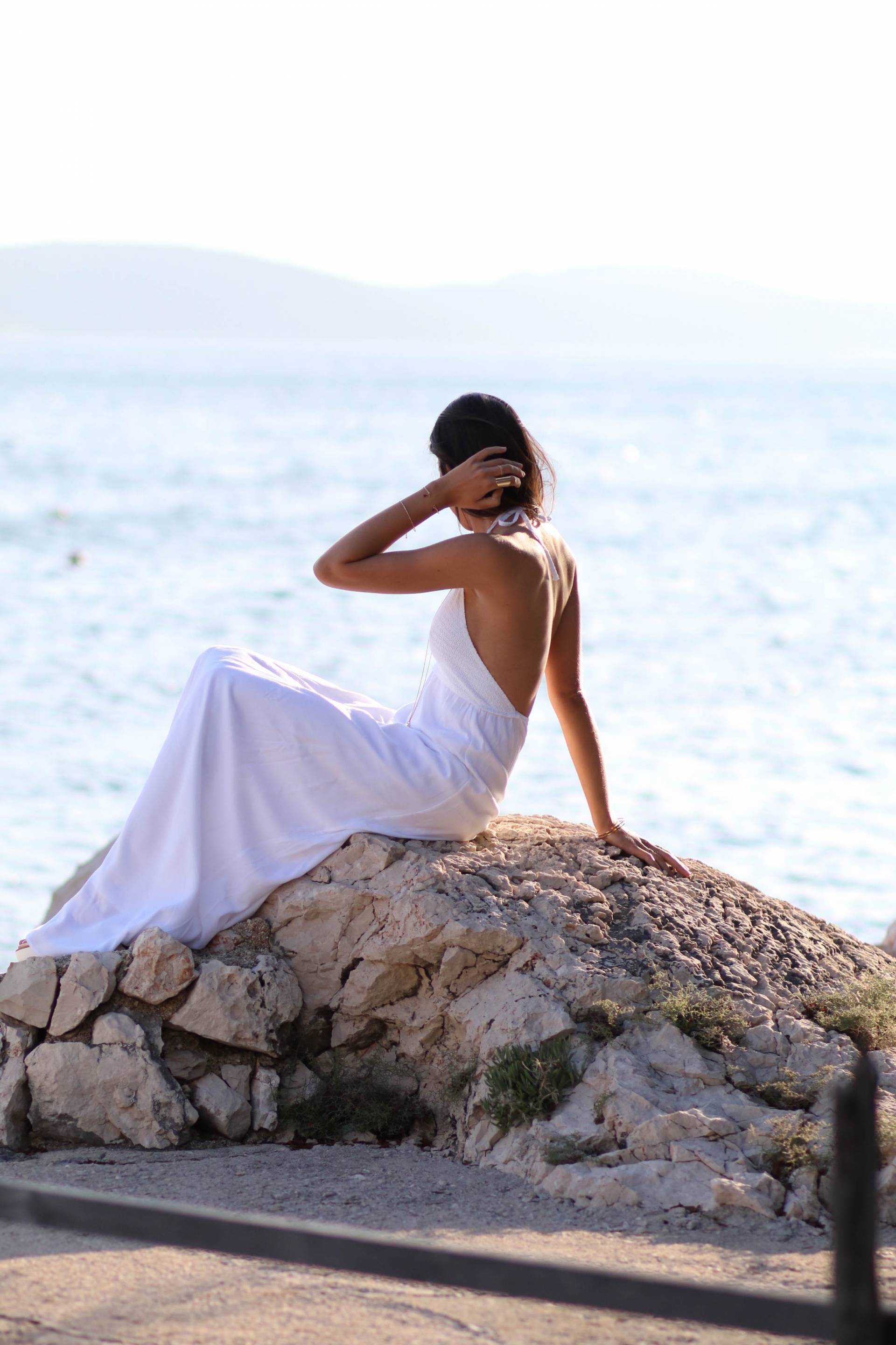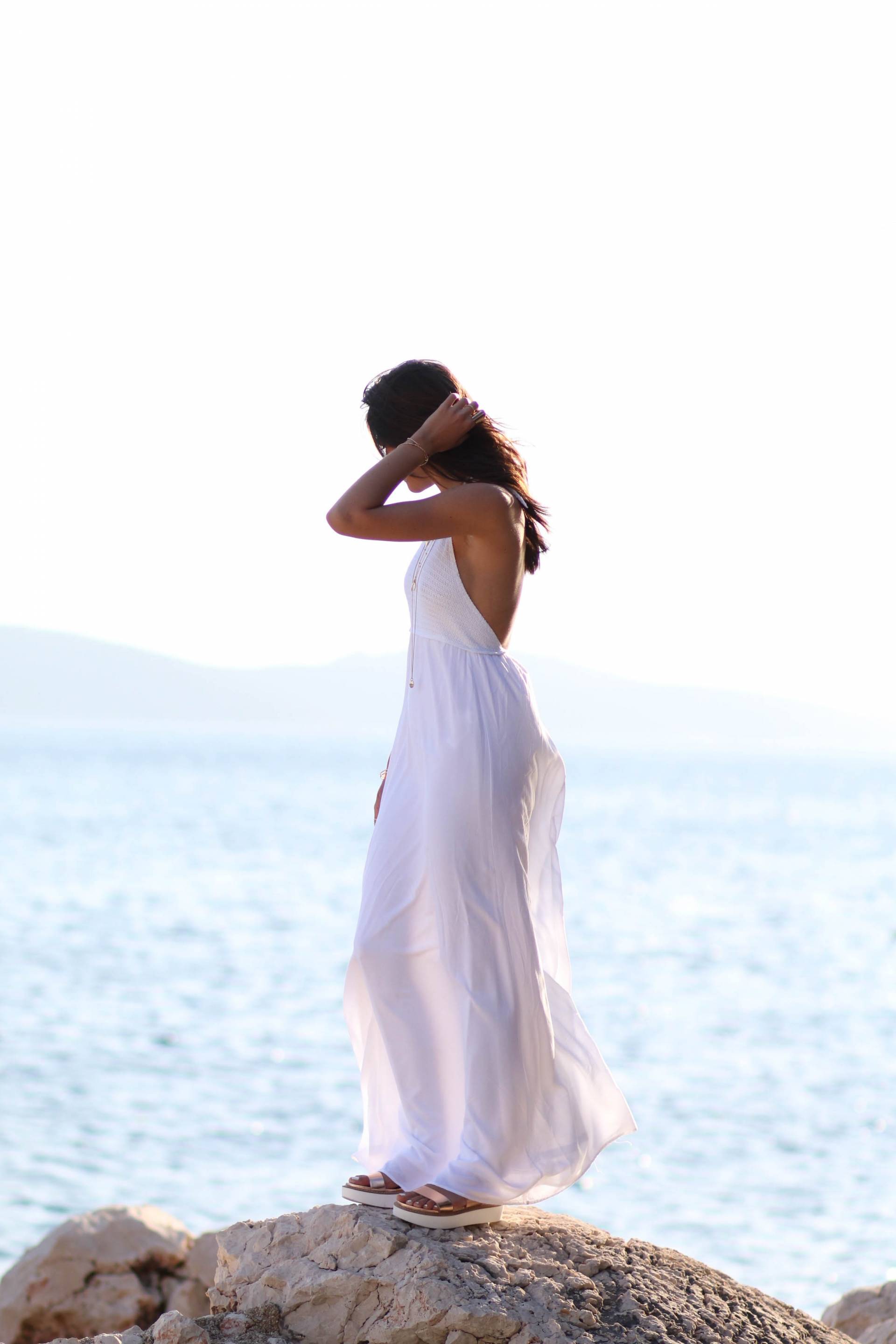 Une simple robe blanche, très élégante, parfaite pour les nuits d’été.