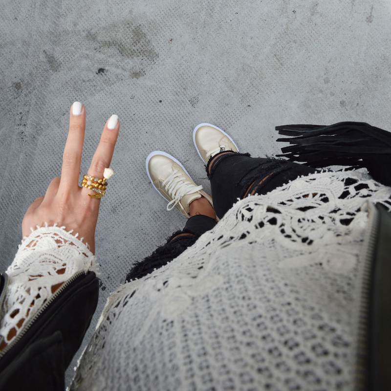 Bon sinon côté look, j’avais vraiment hâte de vous montrer mes nouvelles baskets dorées!